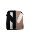 Maglia Donna Lurex Rigata, scollo a V con maniche a 3/4, decoro rigato con contrasto fili dorati.