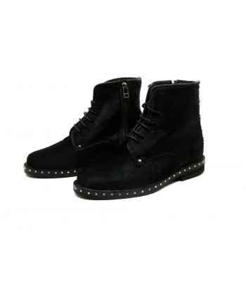 Scarpe Donna Art. Cavallino, Made in Italy, modello stivaletto stringata, suola in cuoio rifinita con cuciture su suola a carrarmato, punta arrotondata, suola con tacco basso bordato con borchie, cerniera laterale, tomaia con pelle effetto pelo.